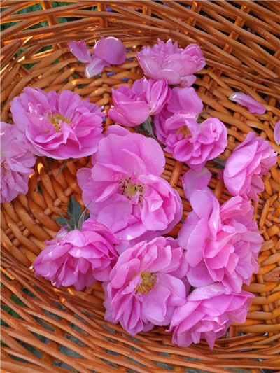 大马士革玫瑰(学名Rosa Damascena,常用名Damask rose,有时也称Rose of Castile),又名突厥蔷薇,蔷薇科蔷薇属,属古典庭院玫瑰,丛生灌木植物,原产于叙利亚,十字军东征时传入中欧,14 世纪开始在法国广为栽种,大马士革玫瑰是保加利亚种植的主要的玫瑰品种,也是世界公认的优质玫瑰品种。叶片为灰绿色,花茎上有硬毛;开重瓣花,花瓣边缘颜色稍浅,有绸缎般的质感;纯粹、细致的花香使其冠压群芳,成为油用玫瑰中的上品。大马士革分两类,夏大马士革Rosa ×damascena为广泛栽培的食用种;秋大马士革Rosa ×damascena bifera参与了园艺育种,是现代杂交月季的重要始祖之一。 |